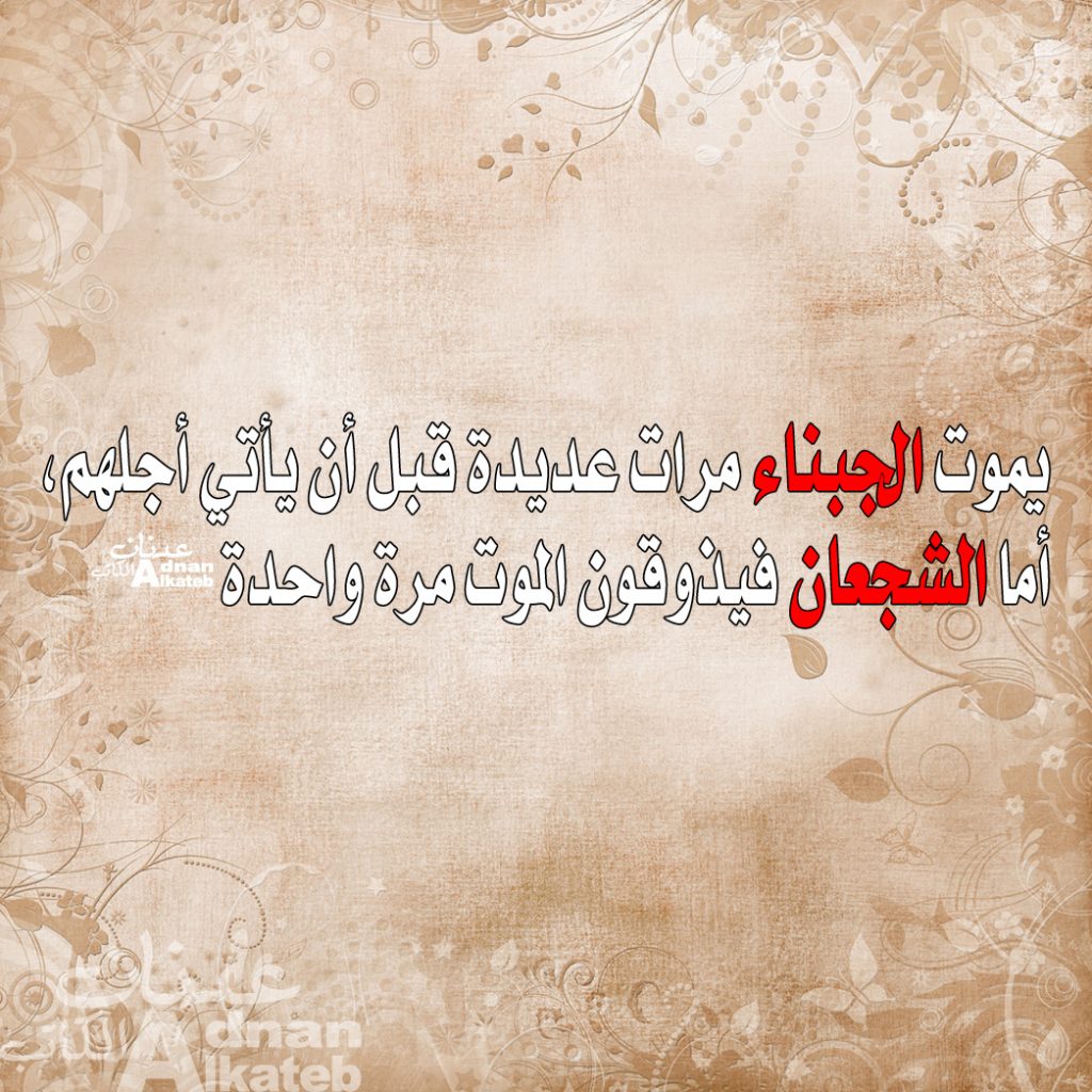 يموت الجبناء مرات عديدة قبل أن ياتي اجلهم أما الشجعان فيذوقون الموت مرة واحدة