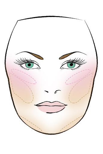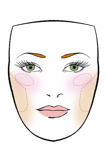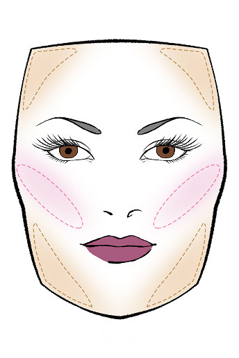 استخدمي بعض التظليل والكونتور في الزوايا العليا من الجبهة والفك للتخفيف من حدة المظهر الحاد لزوايا الوجه، استخدمي بودرة الوجه لصنع زوايا من طرف أذنك حتى شفتيك لكي تصنعي مظهر وجه يميل إلى البيضاوي، واهتمي بمظهر الحاجبين واحرصي على أن يكونا على شكل قوسين مرتفعين.