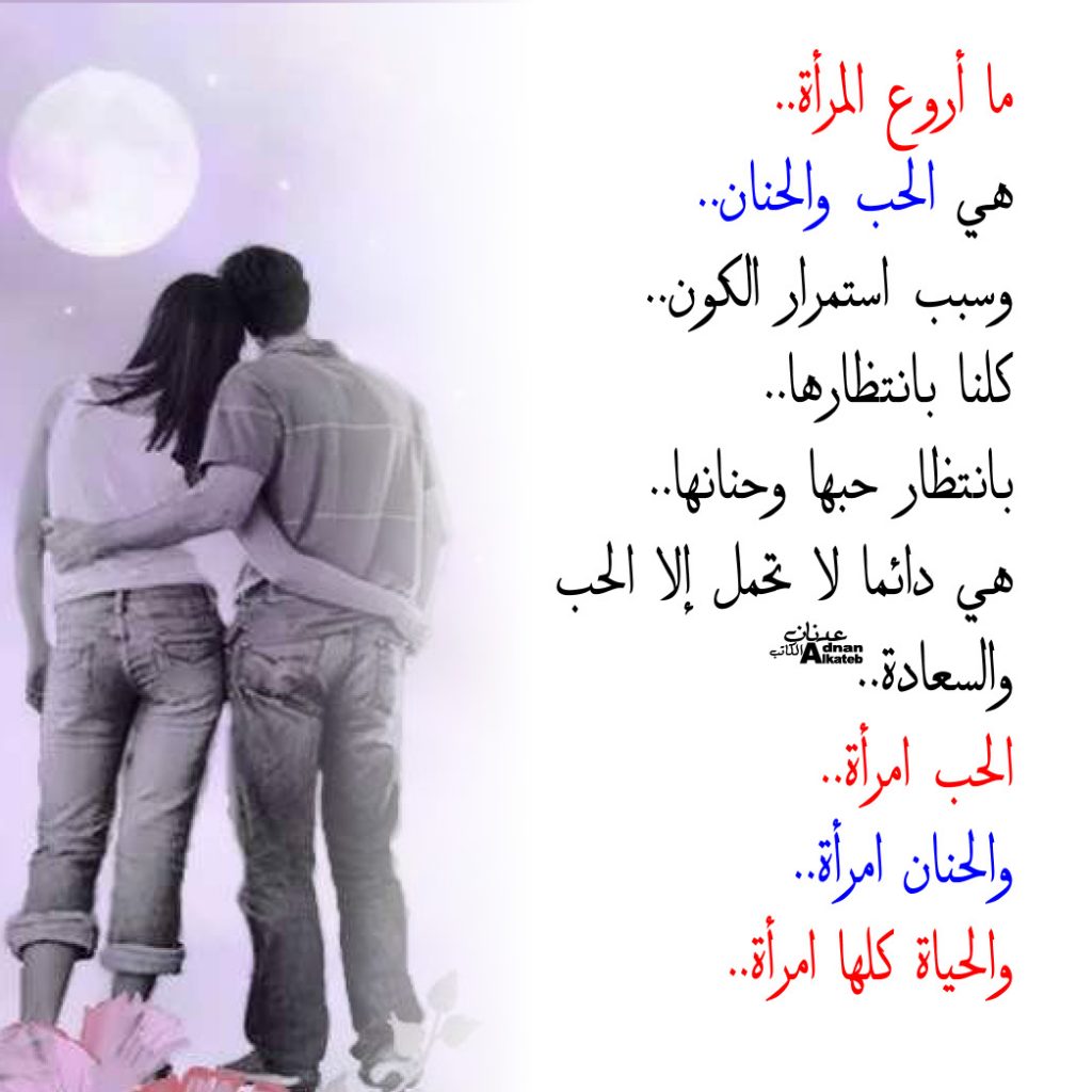 ما أروع المرأة هي الحب والحنان وسبب استمرار الكون كلنا بانتظارها حبها وحنانها هي دائما لا تحتمل إلا الحب والسعادة الحب امرأة والحنان امرأة والحياة كلها امرأة