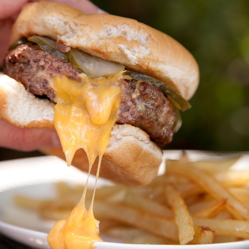 قدّمي البرجر مع البطاطس المقليّة.