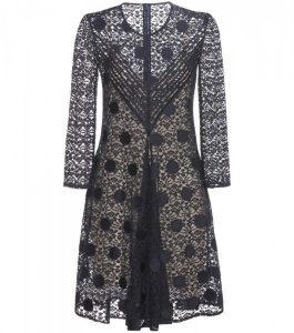 روعة الفستات ورقية في الدانتيل الأسود والزركشة السوداء.