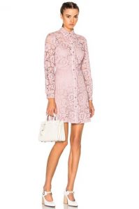 الأبيض مع الوردي والدانتيل على الصدر والأكمام.