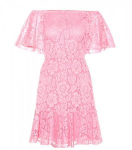 أكتاف ظاهرة مع نصف الأكمام واللون الوردي مع الدانتيل والستان.