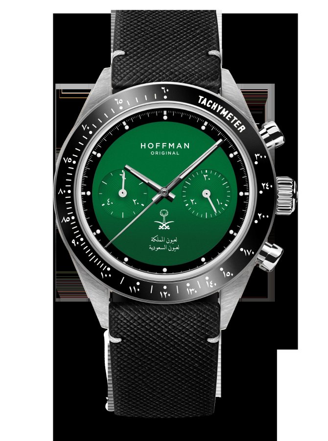 - المملكة العربية السعودية – 50 ساعة تمتاز بميناء أخضر زمردي مع النخلة والسيف وعبارة “لعيون المملكة، لعيون السعودية” باللغة العربية.