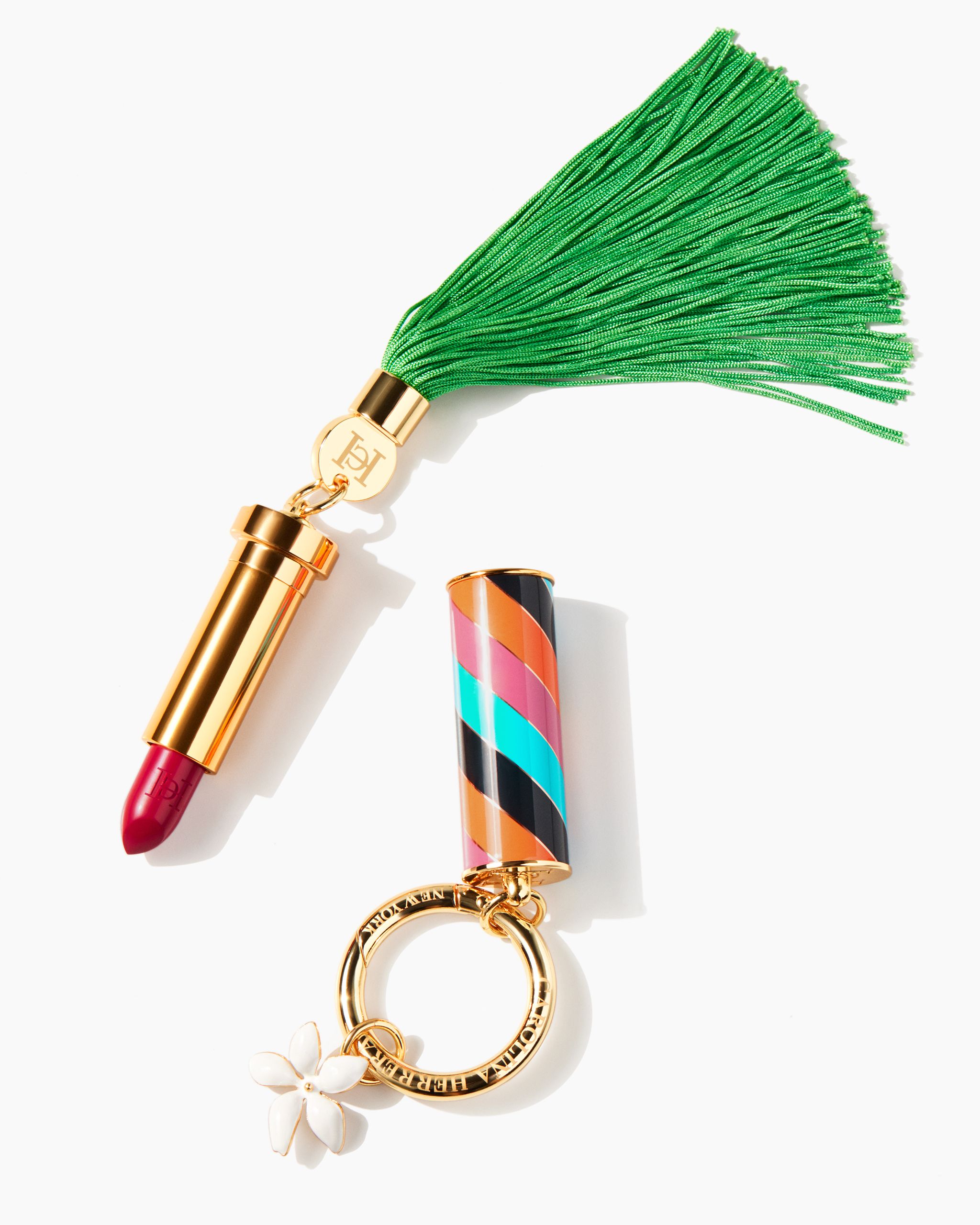 أمّا الشفاه، فتم ترطيبها وتهيئتها لتطبيق الألوان فوقها باستعمال أحمر الشفاه الصغير ميني تينت الشبيه بالبلسم، قبل تعزيزها بلمسات متنوعة من أحمر الشفاه، خاصةً أحمر كارولينا بقوامه الناعم (لون رقم 310)، والذي أطلقته الدار احتفالاً بالذكرى الأربعين على تأسيسها بإلهامٍ من اللون الأحمر الخاص بالمؤسسة كارولينا هيريرا. وهو ما أتاح إطلالات جذابة تتماشى مع حيوية الأزياء بكل ما تحمله من لمساتٍ جريئة وأكمام حيوية وتصاميم تفيض بالثقة. أمّا التدرجات الوردية لأحمر شفاه بيرنينج روز (رقم 371) بلمسة ناعمة، فتشكّل بديلاً عصرياً يتناغم مع الإطلالات وردية اللون في التشكيلة.