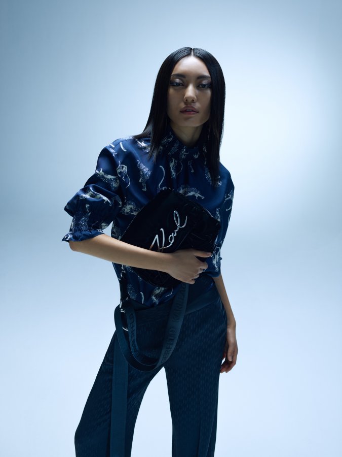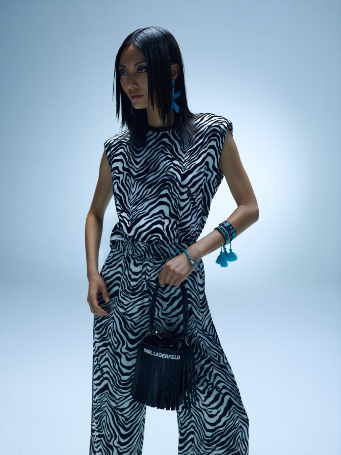أما تشكيلة الإكسسوارات فتضم بعض المجموعات الجديدة التي تعكس موضوع تشكيلة هذا الموسم، حيث يظهر شعار العلامة الأساسي على مجموعة K/Punched بتصميم من القماش الكامل أو المخرّم، بينما تتألق مجموعة حقائب K/Woven Letters بأحرف كلمة Karl من ألياف رافيا خفيفة الوزن وبألوانٍ ساطعة لإضفاء لمسة صيفية فريدة على التصاميم. كما تقدّم علامة كارل لاجرفيلد مجموعتي حقائب K/Seven وK/Autograph برؤية جديدة، حيث تزين تصاميمها بطبعات حمار الوحش وتطريزات الكروشيه التي تعكس موضوع تشكيلة LIFE 2.0.