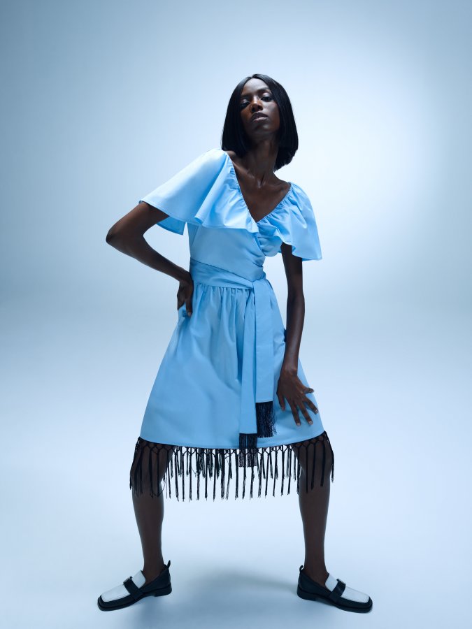وتضم التشكيلة أيضاً معطفاً خفيف الوزن باللون النيلي، وقطعاً منسقة بعناية ومزينة بنقشاتٍ أنيقة لحرفي KL. كما تضم أبرز الإطلالات قميصاً أنيقاً من الجلد الاصطناعي مع سروال قصير مطابق، وجمبسوت بدون أكمام من الجلد الاصطناعي. وتعتمد العلامة في تزيين القطع على تقنيات التطريز وتصاميم الثقوب والتخريمات الأنيقة بلمساتها الخاصة على القطن العضوي. كما تتضمن التشكيلة مجموعة من السترات الموسمية الأنيقة وقطع الصوف والسترات المطرية القابلة للتعديل والقطع المحبوكة الملائمة للإطلالات العملية والرسمية على حدٍ سواء.