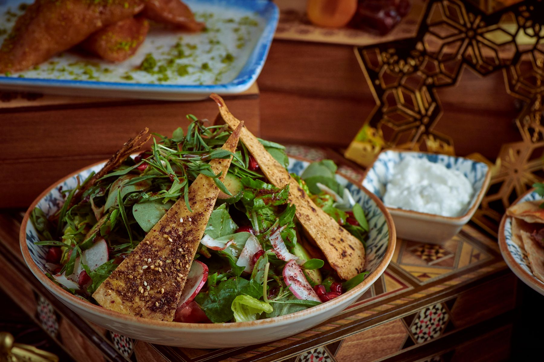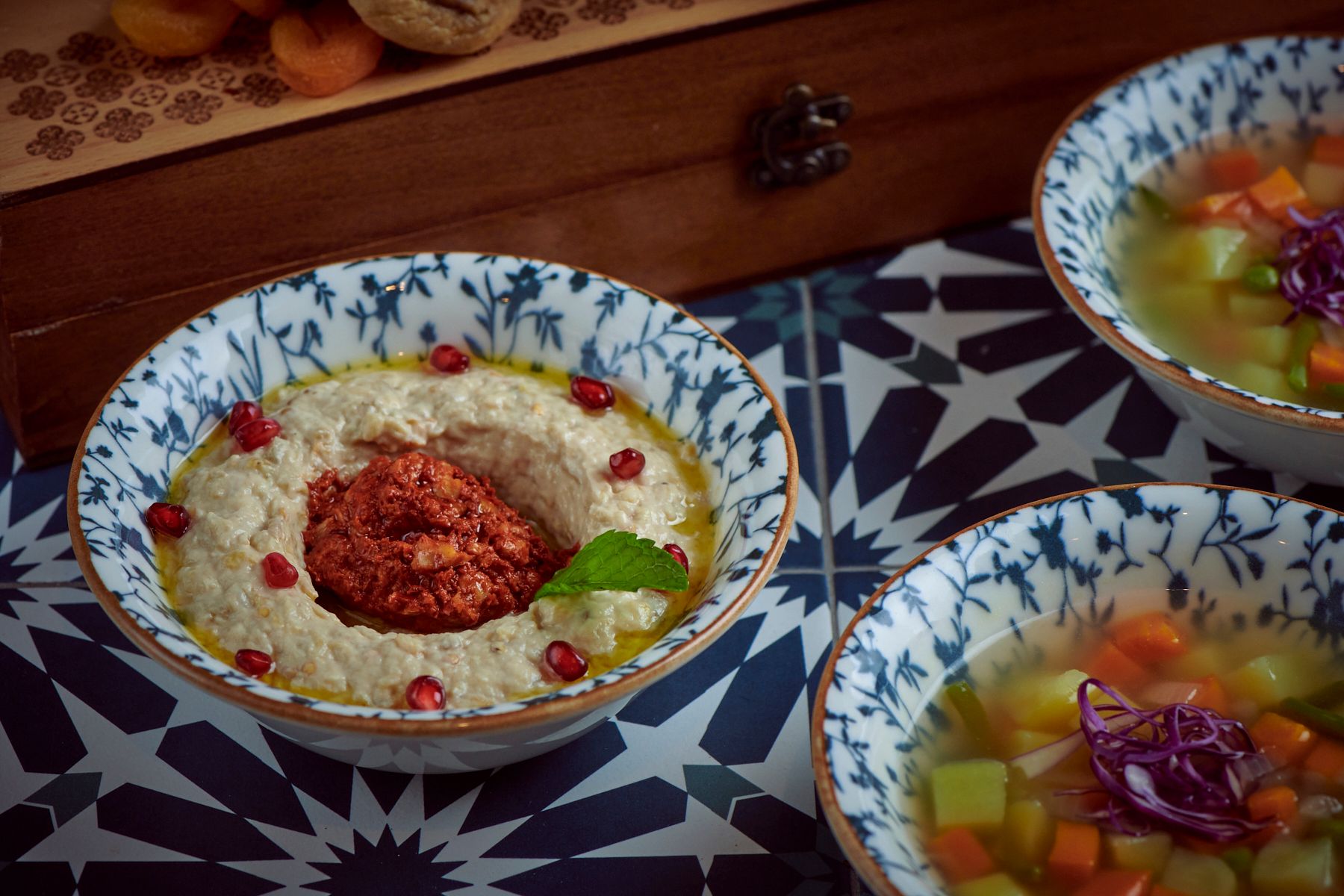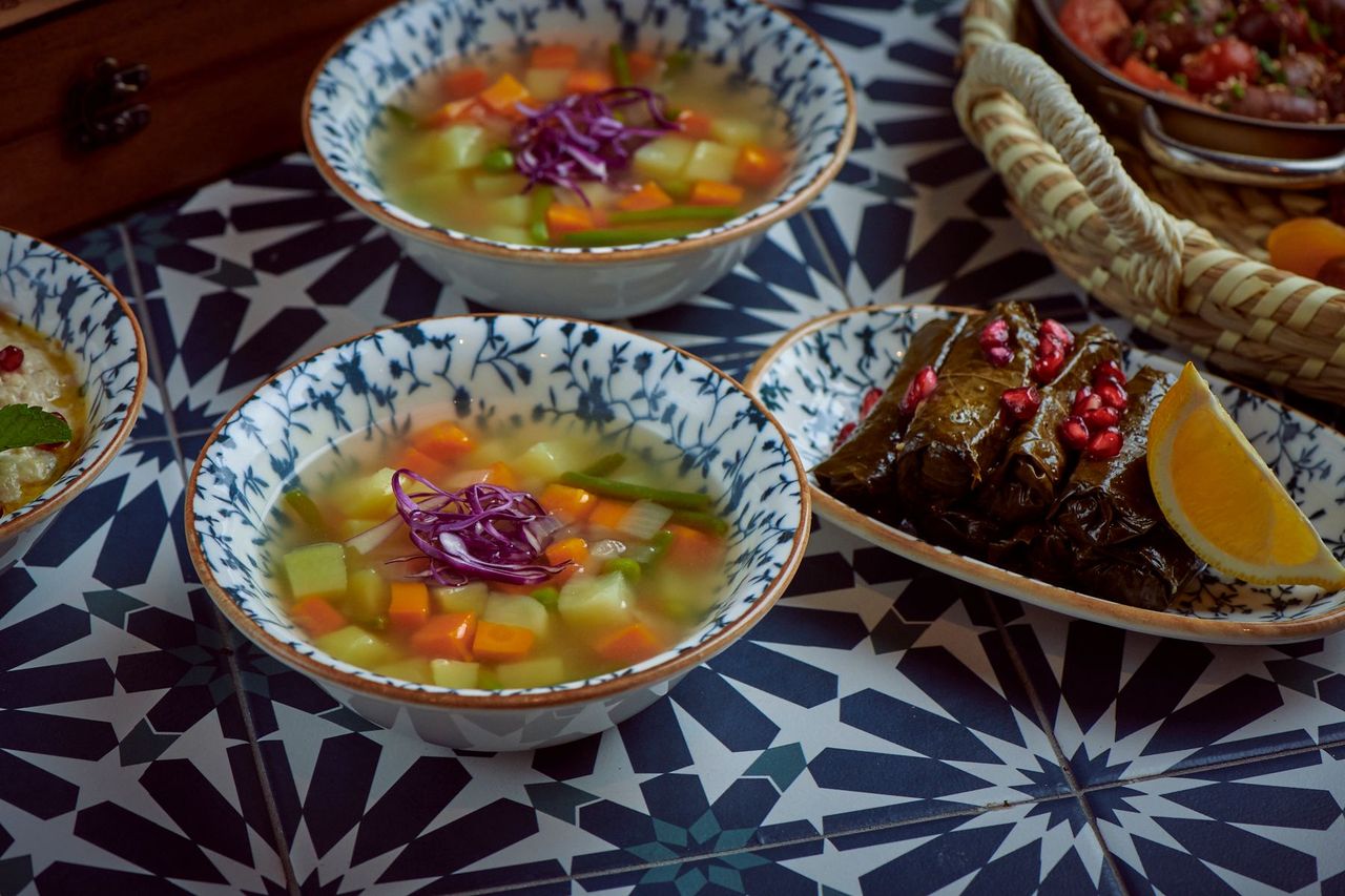 أعدّ المطعم بهذه المناسبة قائمة إفطار مميّزة للشهر الفصيل، تبدأ مع التمر والمشمش المجفّف وقمر الدين والزيتون بحسب التقاليد الرمضانية، تليها الشوربات المغذّية واللطيفة على المعدة مثل شوربة العدس أو الشوربة اليومية.