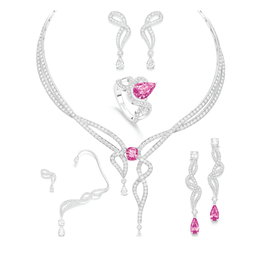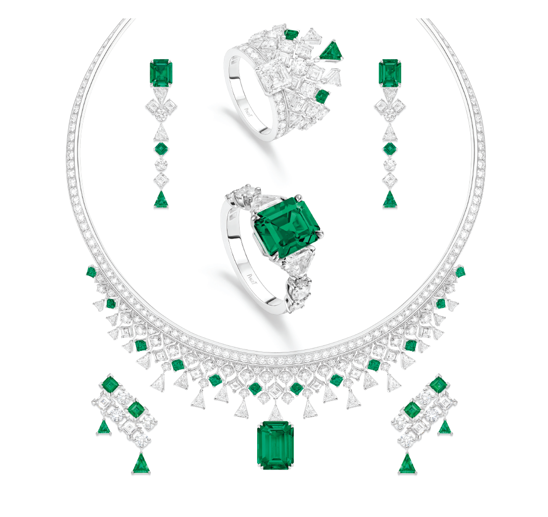 بفضل حرفيتها الفريدة، تقدّم براعة “بياجيه” الأحجار الاستثنائية في ترصيع مرهف يلقي الضوء على جمالها ضمن قطع نفيسة ومرحة في آن معا. من الصفير الأزرق والوردي من سريلانكا ومدغشقر، إلى الأوبال الأسود الأسترالي والزمرد الزامبي الفريد، تشع كل الأحجار بالجرأة والطاقة المتدفقة. ولعل المثال الأروع على عمل “بياجيه” المتقن، يتجلى في الأطقم الرائعة “فولوبتشووس ريبون” Voluptuous Ribbon و”جينيروس ليسز” Generous Laces ، بفضل تصاميمها اللامتماثلة ومنحنياتها الناعمة. وفي الأحجار المتلألئة بقطع “ماركيز” المتعدد الأوجه (55 وجها)، يتلخص الإشراق الوامض في كل أنحاء المجموعة.