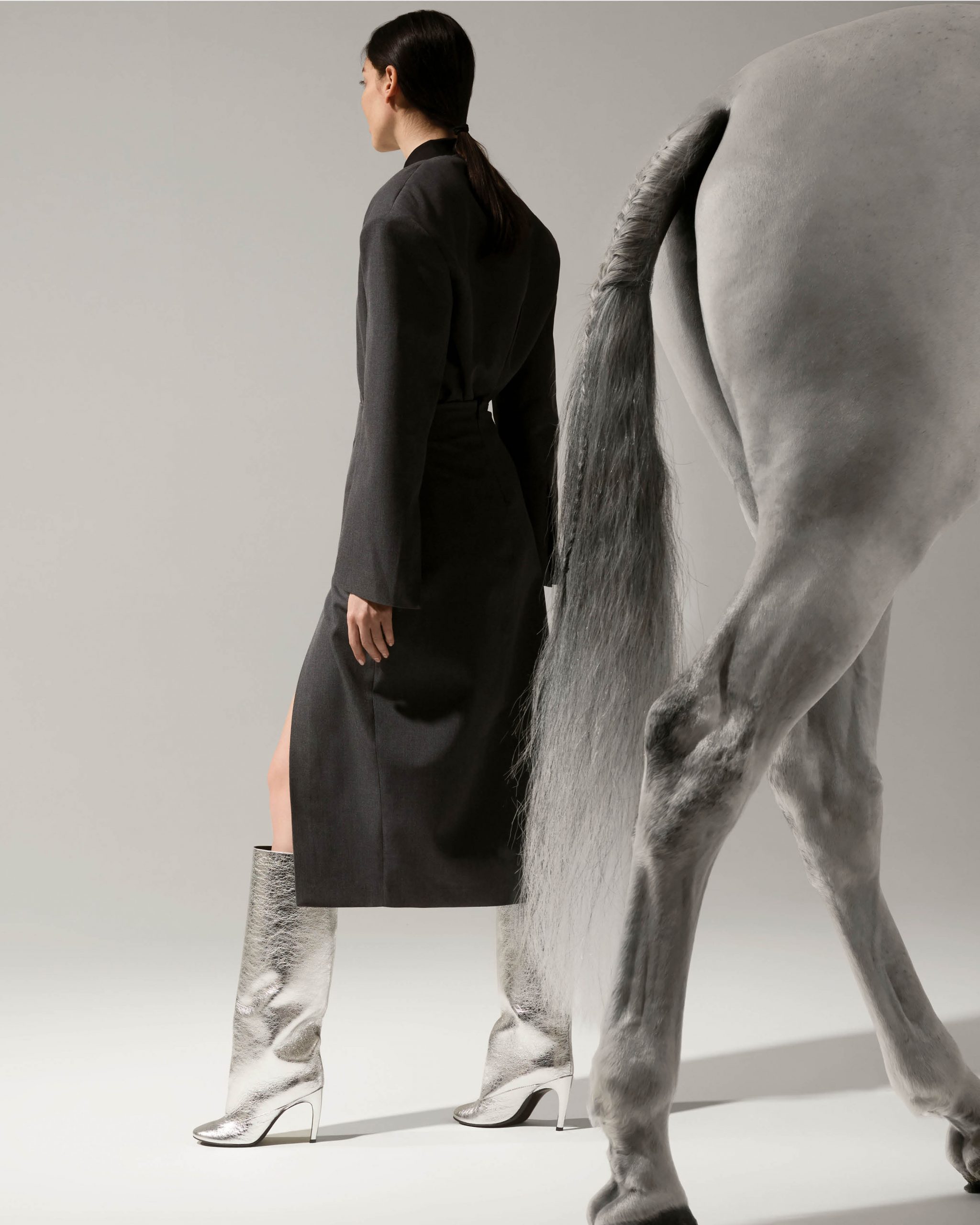 بين الواقع والخيال، تشمل الحملة مزيجًا من الصور وتقنيّات الذكاء الاصطناعي، وتتنقّل بين مواقع عديدة من معمل “سيرجو روسي” في بلدة سان ماورو باسكولي الإيطالية إلى أهمّ عواصم الموضة حول العالم مثل ميلانو وباريس وشنغهاي وطوكيو. بعدسة Gioconda & August، يتصدّر الحملة الفرس الأبيض Imenso الذي يُرافق امرأة “سيرجيو روسي” في رحلتها.