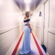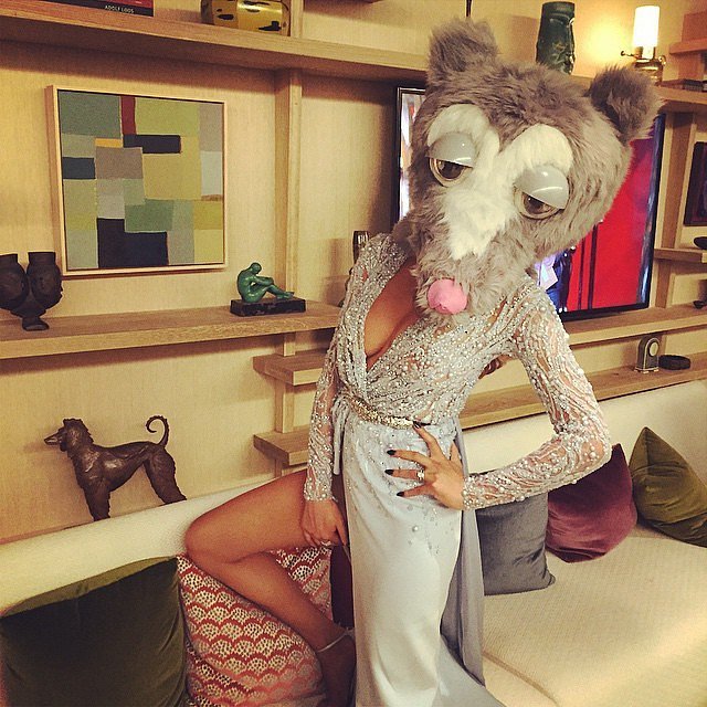 كريسي تيجان وهي ترتدي قناع ضخم مضحك على فستانها الأنيق الذي ظهرت به في حفل الأوسكار.