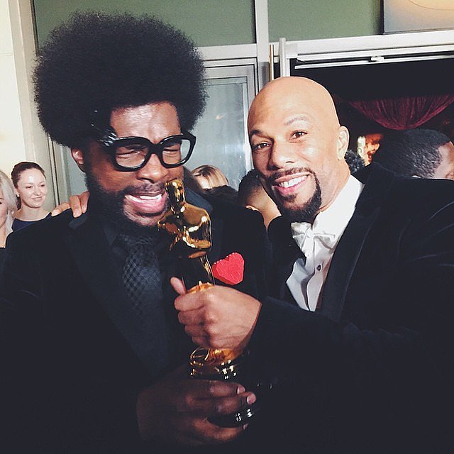 “كومون” يبدو سعيدا بجائزة الأوسكار التي فاز بها أثناء حضوره حفل “Governor’s Ball” الذي أقيم بعد حفل الأوسكار.