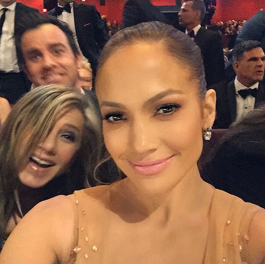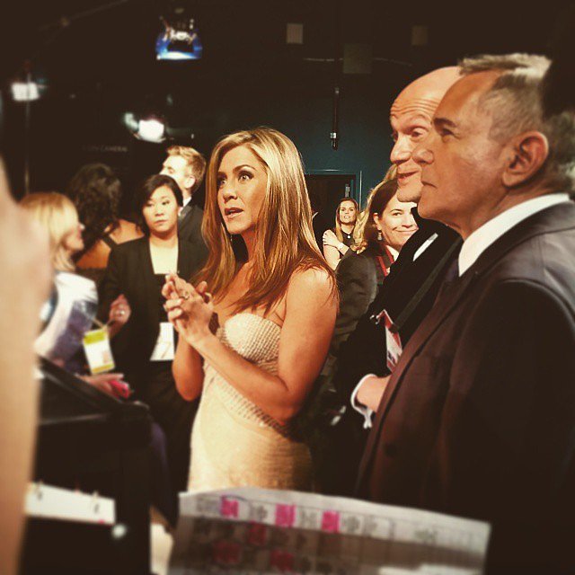 جينفر أنستون أثناء مشاهدتها حفل الأوسكار من وراء الكواليس.