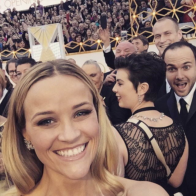 ريس ويذرسبون التقطت صورة “سيلفي” جميلة لها على السجادة الحمراء في حفل الأوسكار.