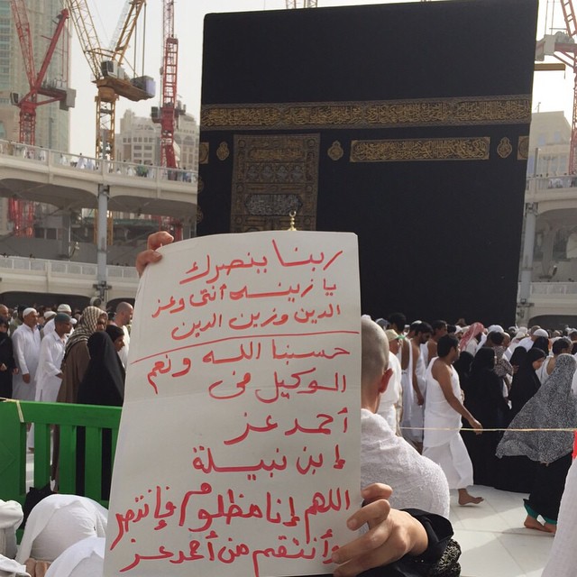 ومن جهة أخرى، نشرت الفنانة زينة عبر صفحتها على موقع التواصل الاجتماعي “انستجرام” صورة تم إرسالها من “فانز” من الحرم تحمل بيدها لافتة تدعو من خلالها لزينة وأولادها بأن ينصرهم الله على أحمد عز.
