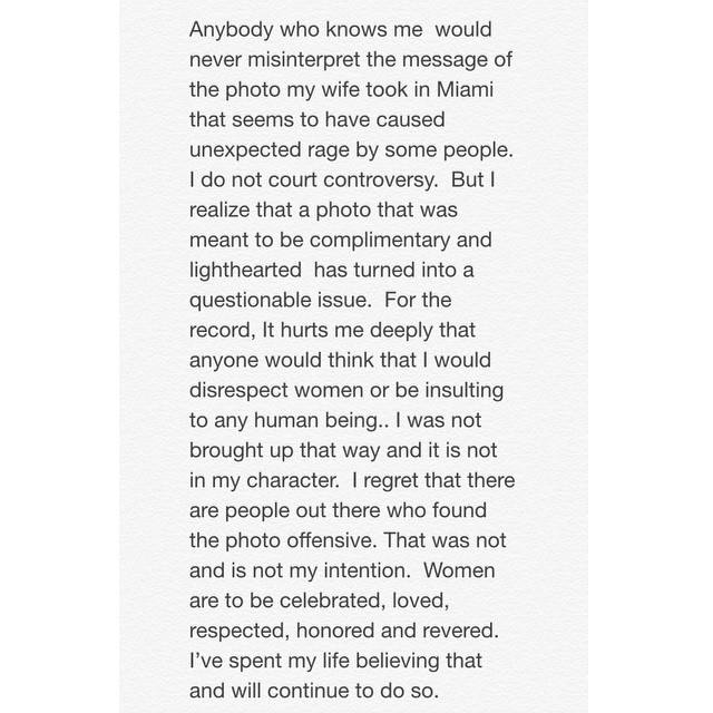 مايكل بوبليه نشر رسالة يعتذر فيها عن أي إساءة غير مقصودة من جانبه تسببت فيها الصورة الأخيرة التي نشرها على موقع الانستجرام والتي يظهر فيها وهو يقف بجانب فتاة تقوم بشراء شيء ما وتعطي ظهرها لمايكل بوبليه والكاميرا، هذه الصورة أثارت الجدل بسبب أن المغني الكندي قد كتب يعلق على جسد الفتاة في هذه الصورة بطريقة مازحة وبسبب أن هذه الفتى على الأرجح لم تكن تعلم أنه يتم تصويرها، وحقيقة لأنه قام بنشر صورتها دون أذن منها والتعليق المثير للجدل والذي تحدث فيه عن جسدها أثار غضب الكثيرون ممن اتهموه بأنه شخص لا يحترم النساء ولا يتمتع بأي لياقة، وهذا ما دفع المغني الكندي إلى نشر رسالة اعتذار على حسابه على الانستجرام.