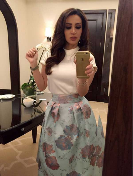 ديانا نشرت أيضاً صوراً من كواليس عرض الأزياء، والذي تألقت خلاله بـ”لوك” أنيق، ارتدت فيه “جيب” و”بلوزة” بيضاء.