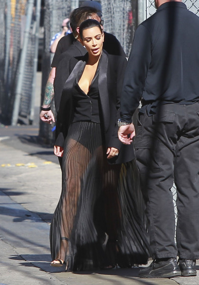كيم كارداشيان تسير وهي تغمض عينيها.