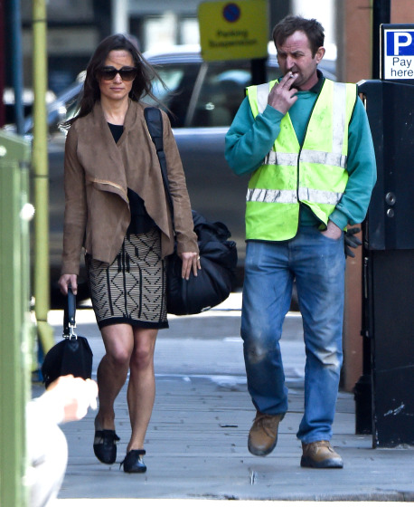 بيبا ميدلتون وأحد الأشخاص ينظر إليها وهي تسير في أحد شوارع لندن، وفي الصورة الثانية والثالثة أيضا مازال هذا الشخص يراقب بيبا.
